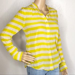 PIM + Larkin long sleeve button down blouse. Semi sheer. Striped with yellow and cream. Perfect business casual addition to your career wardrobe.