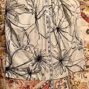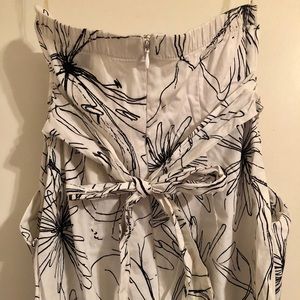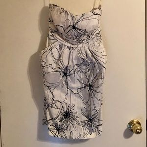 Strapless White Dress with Black flower designs, zipper and tie on the back part. Size 5