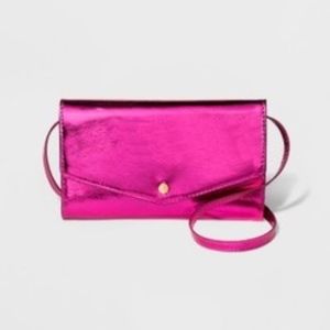 New without tags snap closure cross body purse pink color H 4.5 in W 7.5 IN D 1.5 in Shoulder strap 24 in
