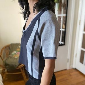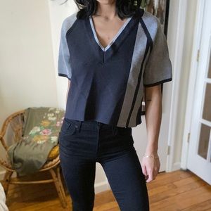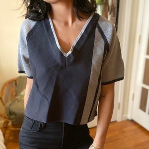Beautiful quality thick navy and silver v-neck crop top with silky feel. Vintage inspired design with a relaxed cut.