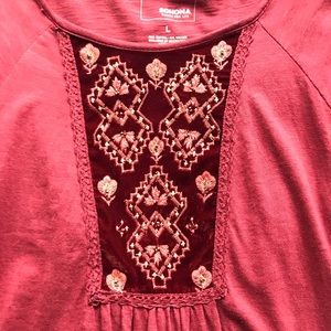 Cute top by Sonoma. Three-quarter sleeve lightweight size large top gently worn. Comes from a smoke free and pet free home.