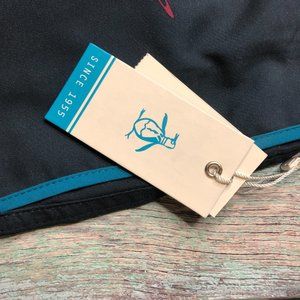 Get your swim on in these handsome Original Penguin® swim trunks. Features space themed print in colors of blue, orange, burgandy, and grey. Crafted from a breathable, moisture-wicking performance material. Elasticized waist with drawstring closure. Hanger loop at left hip. Side hand pockets. Back welt pocket. Mesh interior pocket. Velcro fly. Penguin Pete embroidered at left hem. Mesh lining.100% polyester.