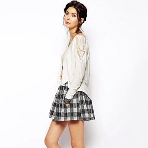 New Free People Black/Ivory Plaid Mini Skirt SMALL