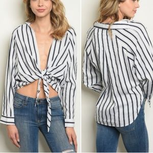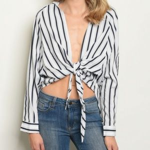 TIE FRONT HIGH LOW NAVY & WHITE STRIPED TOP