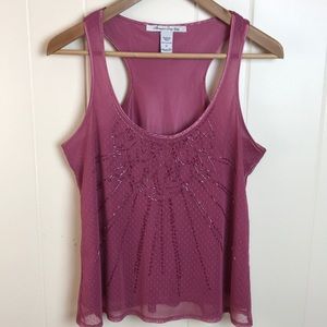 American Rag Dusty Rose Pink Beaded Tank Top Boho Festival Summer (V-1485-1)