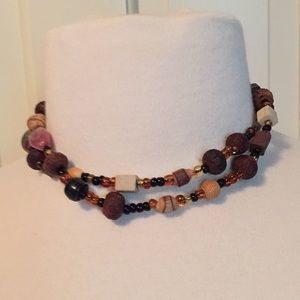 14” wood & glass bead necklace animal style