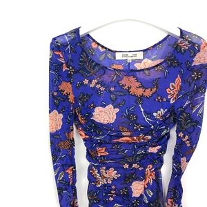 DVF | Canton Blue Mesh Overlay Blue Ruched Dress 4