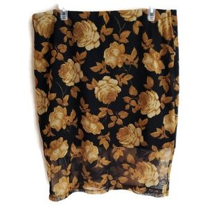 Brand new women's black and yellow floral skirt in the sizes 1X, 2X from the brand Zenobia. See gallery pictures for size chart. 98% Polyester and 2% spandex.