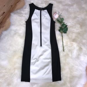 Kensie Black White Sleeveless Dress, S. Stunning figure flattering black side panels with white center panel. Back contrasting zipper. EUC, no holes, rips or stains. Soft and comfortable this can go to the office, dinner or a wedding occasion.