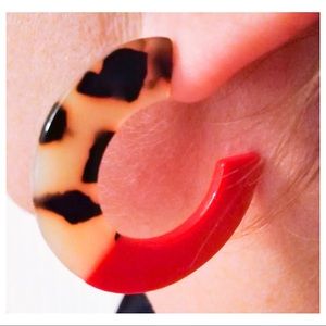 Hoop Earrings Round Flat Brown Leopard Red Acrylic Resin NWOT
