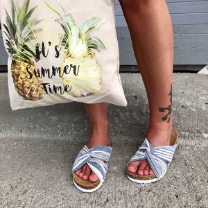 NEW! Linen Blue and White Birkenstock Style Sandal