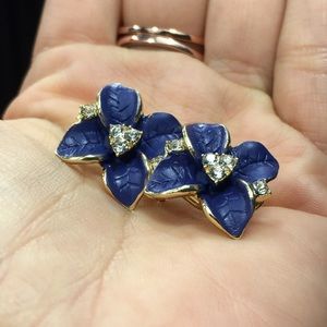Gold tone Royal Blue Flower earrings ear ring