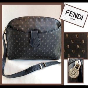 Fendi Roma Vintage Crossbody in coated canvas with monogram & leather, has exterior pocket with logo magnetic snap, interior zipper pocket with logo, adjustable strap with logo embossed. This bag is in excellent condition despite the age as was used only few times & was purchased by myself in Italy. Please note that vintage Fendi release in the early 80’ don’t have a serial # but hologram is embossed in interior lining & is only visible with use of special lens but I was able to show in my pics