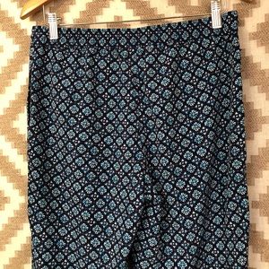 Talbots blue floral patterned elastic waistband pull on pants. Silky polyester material. Gently worn and in great condition! Size 6, waist measures 15.5” across lying flat unstretched, hip-21” across, rise-10.25”, inseam-30! 82 11