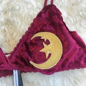 NWT Urban Outfitters red velvet bralette with gold moon aplique. Available in Sizes S, M, and L