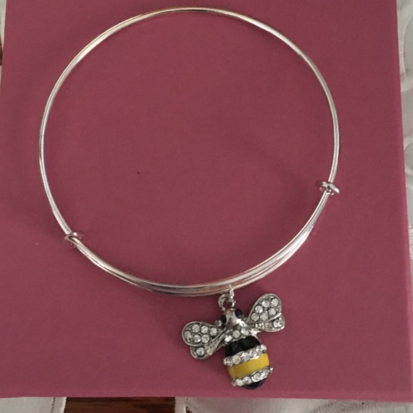 Adjustable silver tone bracelet with crystal bee charm