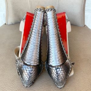 📍No tear or deep scuffing on the suede upper & python-covered stacked heel/platform. All gunmetal stud are intact!