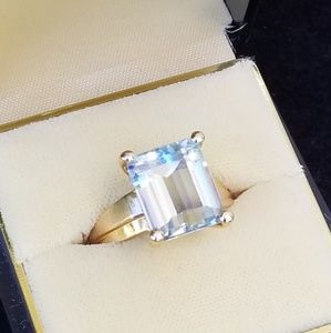 14k GOLD Large 5.5 ct Natural Aquamarine Ring 💎