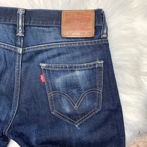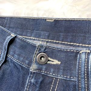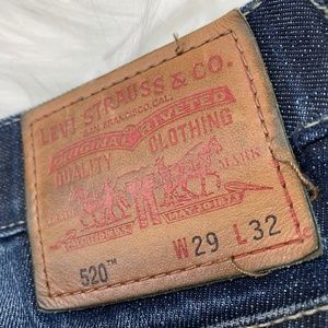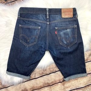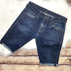 Originally 520 Taper jeans. Now, crazycool cutoffs! Size 29. Approx measurements in inches; waist 30, inseam 11, front rise 10, hips 40, 7 across legs.