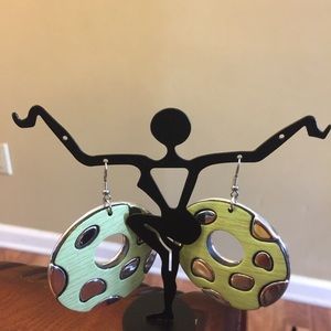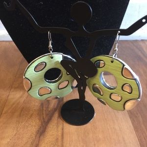 Elegant Lime green/Silver Plated drop Earrings . Pre-Owned and barely used. For Appx Size see photos attached. No Trade and No hold.