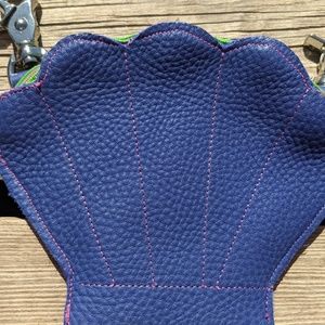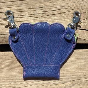 Handmade one of a kind mermaid seashell / shell fannypack / fanny pack / hip bag / purse / pouch / wallet. Purple leather, hot pink stitching, green zipper top & hot pink interior. Two sturdy silver clips to hook to your jean loops. One of a kind hippie boho festival! ๐งโโ๏ธ๐งโโ๏ธ๐โ๏ธ Coachella must have โฎ๏ธโ๏ธ๐ต๏ธ๐