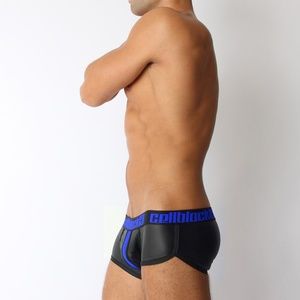 The Vector Trunk is our sexiest gear short to date. It features luxuriously smooth, rubbery, skin-tight fabric with great stretch and recovery, with an extra-soft fleece feel on the inside for comfort. The base color is black with the pouch, waistband and side panels in contrasting fetish colors.