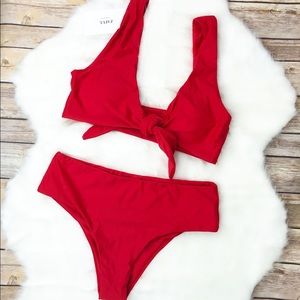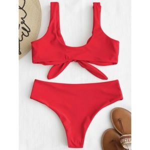 Zaful Bright Red Tie Front Padded Bikini Set