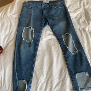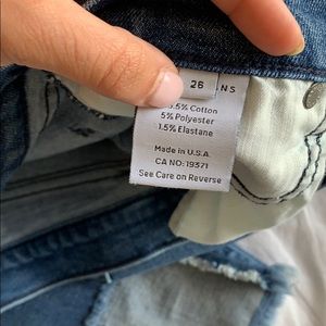 Size 26 James Jeans with rips and raw hems. Approximately 15inches at the waist. I’d say true to size for a 4-6, I lost some weight so these don’t fit me anymore. Please ask any questions!