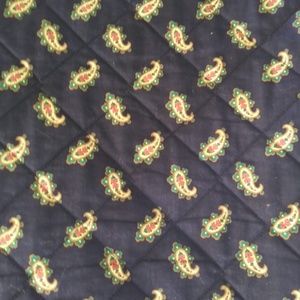 Size Small. Navy Blue background with mini paisley print. White and gold buttons.