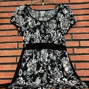 Really cute black and white floral Motherhood Maternity blouse. Short sleeves. Round neck. Tie around the midsection to the back. Great used condition.