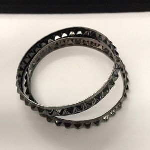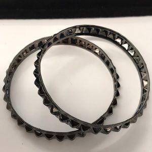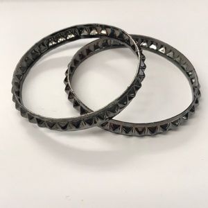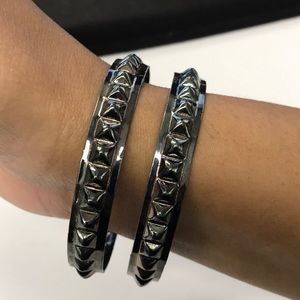 Metal bracelets with little spikes around them. Not sure what metal(s) these bracelets are made of. Perfect to funk up any outfit