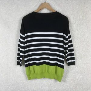 Cute Striped Black, White, & Green Sweater With Side Pocket! Throw this on with some jeans and loafers for a quick, casual outfit!
