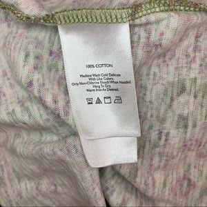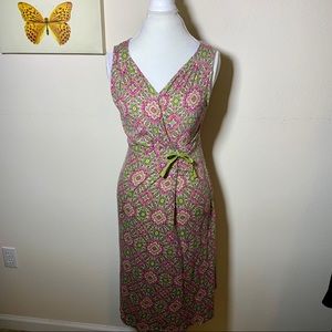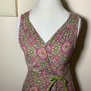 EUC Eddie Bauer green and pink floral maxi dress in size small. Feathers shoe string tie adjustable cinched waist and made of 100% cotton