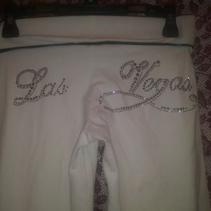 Sexy Form fitting top with rhinestones "LAS VEGAS" leggings legs r not skinny fit size S please see pics for missing sequins