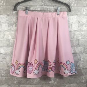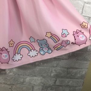 Adorable pink scuba skirt features both Care Bears and Care Pusheens among rainbows, hearts, & shooting stars!