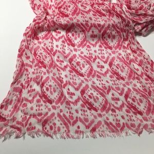 Pretty pink scarf from Gap with fringe ends. Lightweight material with an Ikat pattern.