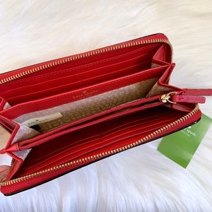New With Tags- Kate Spade Red Carpet Grove Street Neda Wallet With Zip Around Closure, Back Full Length Slip Pocket, Interior With 12 Credit Card Slots, Zippered Change Compartment And Multiple Bill Compartments. Length 7.5”, Hight 3.75”, Depth 0.75”.