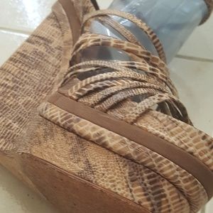 Stunning Vero Cucio, high wedges in snake like material. These are 2.5 in height at toes and 6 inches in height at heels. Worn a few times. 7B sized. Fit true to size.