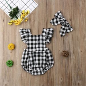 Brand new Plaid Rompers Infant Kids Baby Girl sunsuit Romper Jumpsuit Summer Toddler One-Piece playsuit Outfit Backless Playsuit. Light cotton/ linen like material