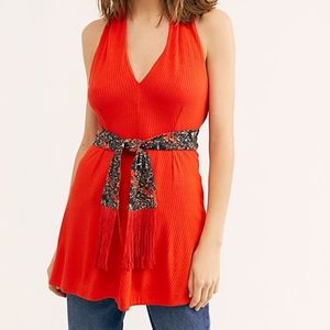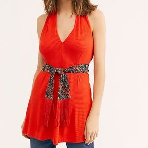 DONATED! FREE PEOPLE Halter Top Open Back Fringed Wrap Ties