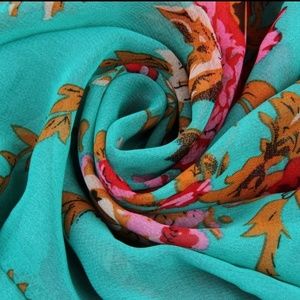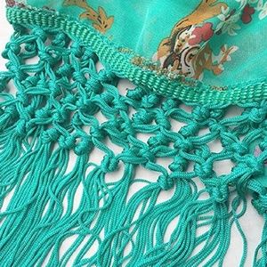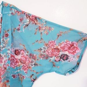 Brand NEW never worn Boho Chiffon Kimono. Teal green with a floral print and crochet tassle detail. Soft, lightweight & flowy.