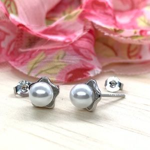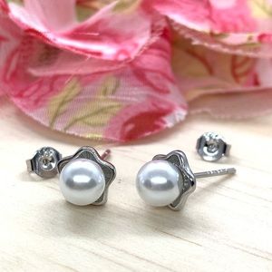 🌟Sterling Silver 925 Faux Pearl Stud Earrings
