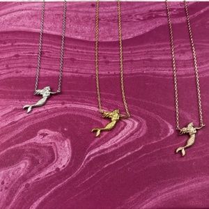 Mermaid necklaces available in silver & gold. Each sold separately, approx 16”.