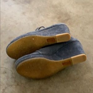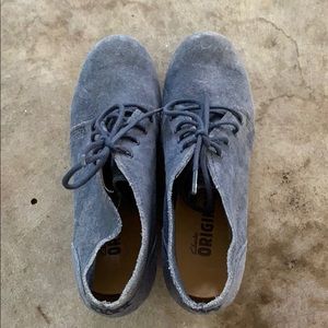 Blue suede lace up booties. Super comfortable and easy to walk in. Small signs of wear.