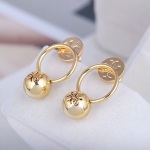 NEW Tory Burch Gold Logo Bead Hoop Drop Earrings