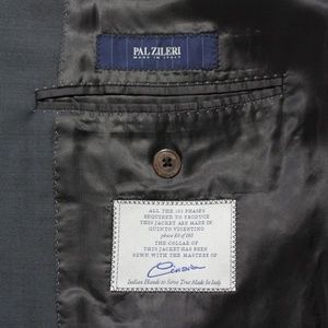 Pal Zileri recent grey wool blazer, that is made in Italy, is in fabulous condition with no tears, stains, or rips. Really almost no visible signs of wear on it. Note that the tag says it is a 56R EU/ 46R US however it measures to be a 42R US. Please view measurements below.