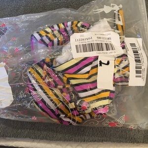 Love the colors on this bikini!! Top has a tie back and removable padding and straps. Bottom has ties on the sides. Measurements below were taken as photographed, so sizing can go up or down depending on how it is worn. — NWT