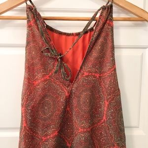 This dress is more of an coral, but more orange than pink, with a decorative gray scale color on the overlay. The top is halter with adjustable straps. This is the perfect flowy short sundress for summer, perfect for a bbq, concert, or date night!