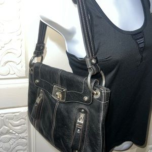 B Makowsky Black Pebbled Leather Handbag