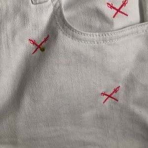 In excellent pre-owned condition white Lilly Pulitzer jeans with pink cocktail swords and olives!